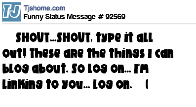 X ♫ SHOUT…SHOUT, type it all out! These are the things I can blog about. So log on… I'm linking to you… Log on. ♫ (