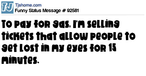 X says To pay for gas, I'm selling tickets that allow people to get lost in my eyes for 15 minutes.