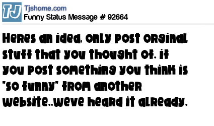 X is heres an idea, only post orginal stuff that you thought of. if you post something you think is "so funny" from another website..weve heard it already.
