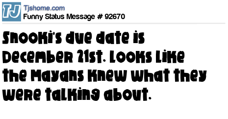 - # 92616 Snooki's due date is December 21st, 2012. Well played, Mayans...well played.