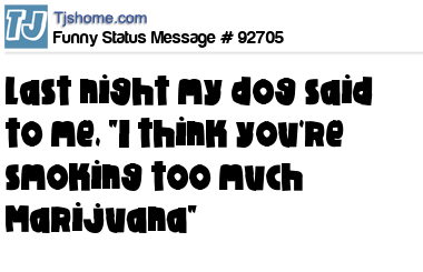 X says Last night my dog said to me, "I think you're smoking too much Marijuana"