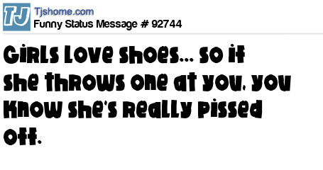 X is Girls love shoes... so if she throws one at you, you know she's really pissed off.
