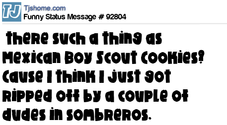 X is there such a thing as Mexican Boy Scout Cookies? Cause I think I just got ripped off by a couple of dudes in sombreros.