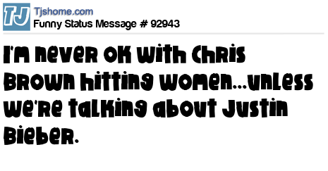 - # 94486 Surprised to hear Chris Brown had released a single ft. Justin Bieber. I thought Chris was legally obliged to stay 100ft away from women