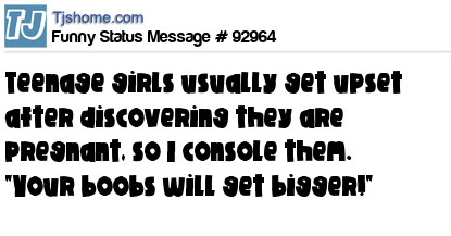 X Teenage girls usually get upset after discovering they are pregnant, so I console them. "Your boobs will get bigger!"