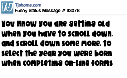 - # 19306 You know you are getting old when you have to scroll down, and scroll down some more, to select the year you were born when completing on-line forms.