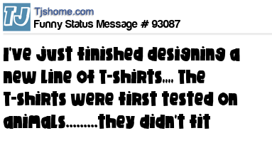 X I've just finished designing a new line of T-shirts,,,, The T-shirts were first tested on animals.........they didn't fit