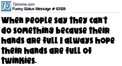 X says When people say they can't do something because their hands are full I always hope their hands are full of twinkies.
