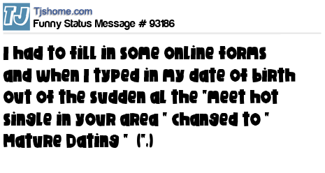 X is I had to fill in some online forms and when I typed in my date of birth out of the sudden al the "meet hot single in your area " changed to " Mature Dating " (",)