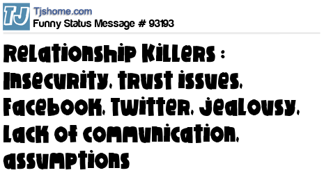 X is Relationship Killers : Insecurity, trust issues, Facebook, Twitter, jealousy, lack of communication, assumptions