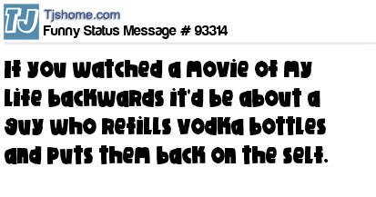 - # 197719 If you watched a movie of my life backwards it would be about a guy who refills beer cans and puts them back into the fridge.