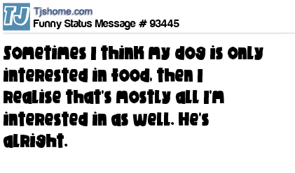 X Sometimes I think my dog is only interested in food, then I realise that's mostly all I'm interested in as well. He's alright.