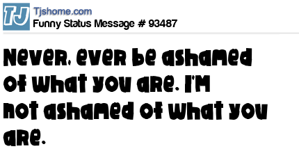 X Never, ever be ashamed of what you are. I'M not ashamed of what you are.