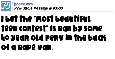 X says I bet the "most beautiful teen contest" is ran by some 40 year old perv in the back of a rape van.