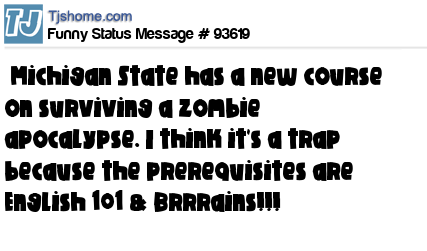 X says  Michigan State has a new course on surviving a zombie apocalypse. I think it's a trap because the prerequisites are English 101 & Brrrains!!!