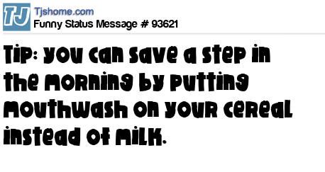 X says Tip: you can save a step in the morning by putting mouthwash on your cereal instead of milk.