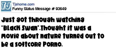 X Just got through watching ''Black Swan".Thought it was a movie about nature turned out to be a softcore Porno.