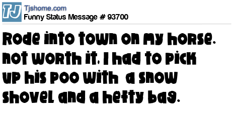 X is rode into town on my horse. not worth it, I had to pick up his poo with a snow shovel and a hefty bag.
