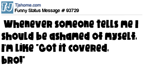 X Whenever someone tells me I should be ashamed of myself, I'm like "Got it covered, bro!"