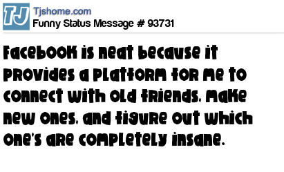 - # 118662 Facebook is neat because it provides a platform for me to connect with old friends, make new ones, and figure out which one's are completely insane.