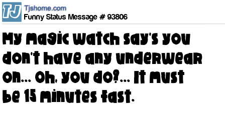 - # 141464 "Hey Baby, My Magic watch says you don't have any underwear on" "Oh, You do?" "It must be 15 Minutes fast ' :)