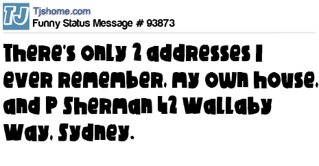 X There's only 2 addresses I ever remember, my own house, and P Sherman 42 Wallaby Way, Sydney.