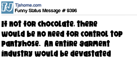 X says If not for chocolate, there would be no need for control top pantyhose. An entire garment industry would be devastated