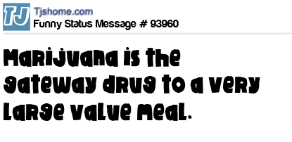- # 94172 Marijuana IS a gateway drug.. It leads to sweatpants and Cheetos.