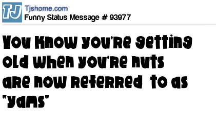 X is you know you're getting old when you're nuts are now referred to as "yams"