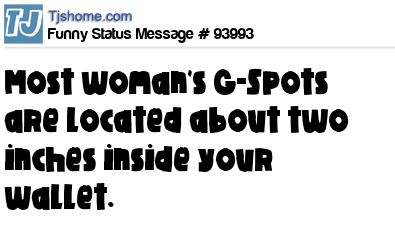 X Most woman's G-Spots are located about two inches inside your wallet.