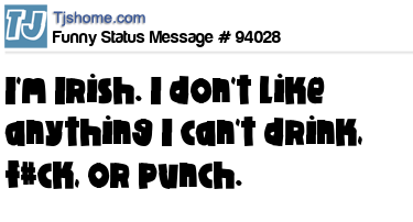 - # 94105 I am so sick of Irish Stereotypes ....as soon as I finish this pint of Guinness I'm gonna punch someone in the face