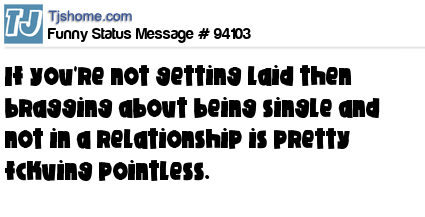 X If you're not getting laid then bragging about being single and not in a relationship is pretty fckuing pointless.