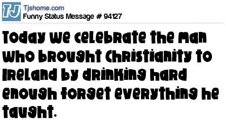 X says Today we celebrate the man who brought Christianity to Ireland by drinking hard enough forget everything he taught.