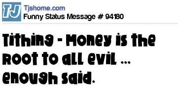X says Tithing - Money is the root to all evil ... enough said.