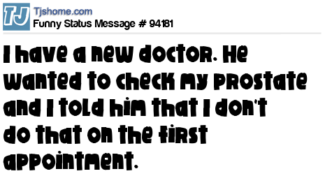 X I have a new doctor. He wanted to check my prostate and I told him that I don't do that on the first appointment.