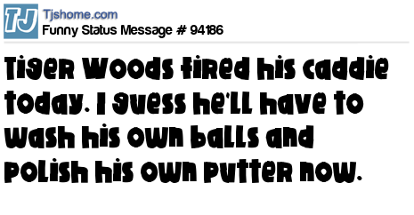 X  Tiger Woods fired his caddie today. I guess he'll have to wash his own balls and polish his own putter now.