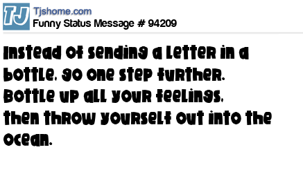 X Instead of sending a letter in a bottle, go one step further. Bottle up all your feelings, then throw yourself out into the ocean.