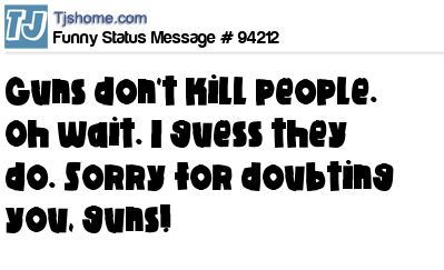 X Guns don't kill people. Oh wait. I guess they do. Sorry for doubting you, guns!