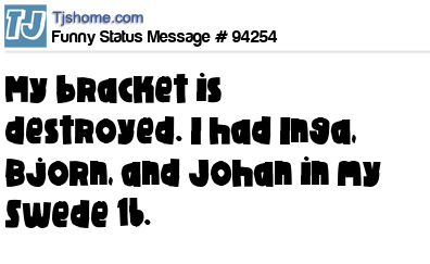 X says My bracket is destroyed. I had Inga, Bjorn, and Johan in my Swede 16.