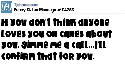 - # 94332 If you don't think anyone loves you or cares about you, gimme me a call...I'll confirm that for you! (The Confirmation Service, 1-800-I-CONFIRM)