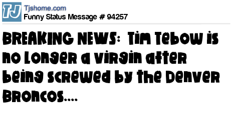 X BREAKING NEWS: Tim Tebow is no longer a virgin after being screwed by the Denver Broncos....