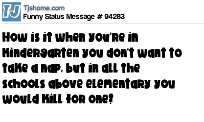 X says How is it when you're in kindergarten you don't want to take a nap, but in all the schools above elementary you would kill for one?