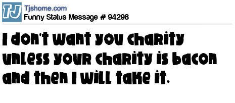 X I don't want you charity unless your charity is bacon and then I will take it.