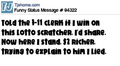X  Told the 7-11 clerk if I win on this lotto scratcher, I'd share. Now here I stand, $2 richer, trying to explain to him I lied.
