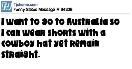 X I want to go to Australia so I can wear shorts with a cowboy hat yet remain straight.