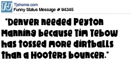 X  "Denver needed Peyton Manning because Tim Tebow has tossed more dirtballs than a Hooters bouncer."
