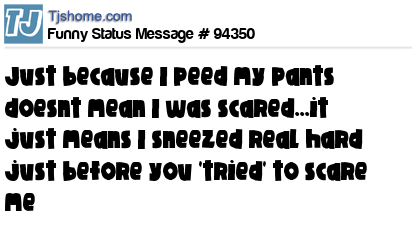 X is just because I peed my pants doesnt mean I was scared...it just means I sneezed real hard just before you 'tried' to scare me