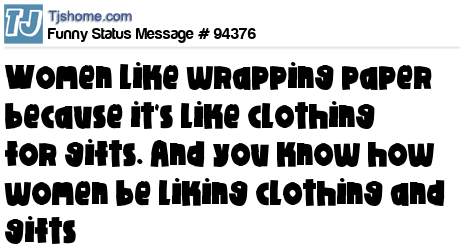 X says Women like wrapping paper because it's like clothing for gifts. And you know how women be liking clothing and gifts