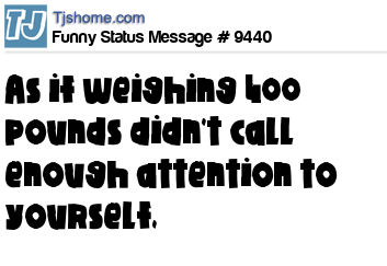 X says As if weighing 400 pounds didn't call enough attention to yourself,