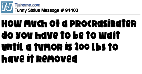 X is how much of a procrasinater do you have to be to wait until a tumor is 200 lbs to have it removed